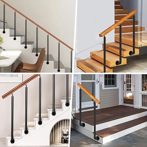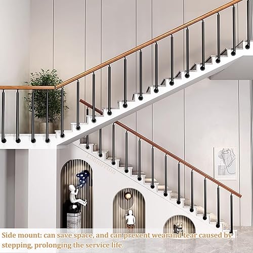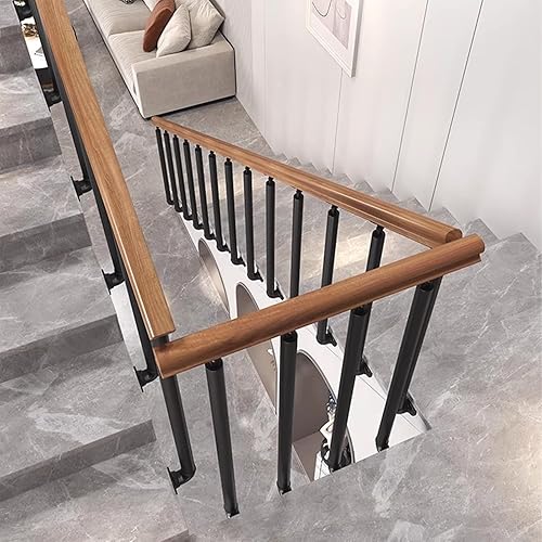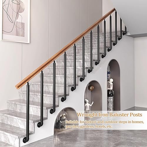 Colonne con colonnine in Ferro Battuto Nero, Ringhiera per Scale Montata Lateralmente per Villa Mansarda Balcone Portico, Ringhiera per Corrimano per Scale Interne all'aperto(110cm(43.3in))