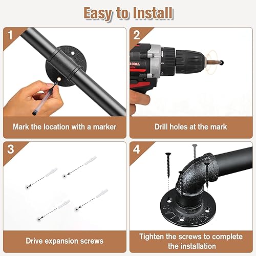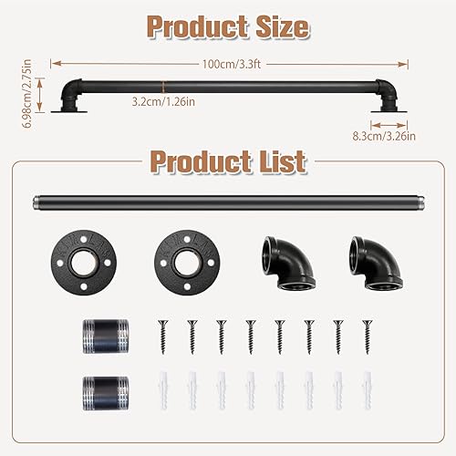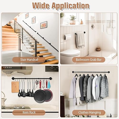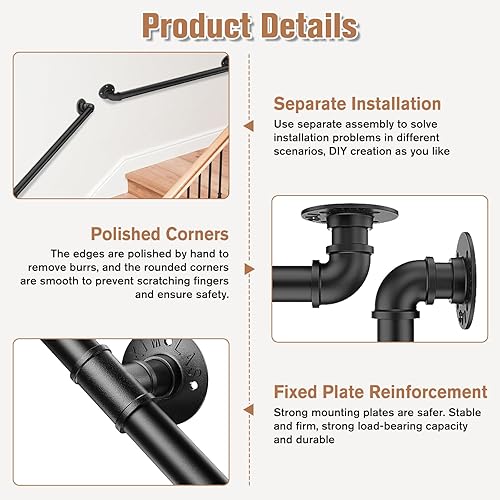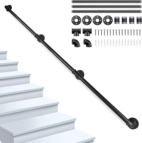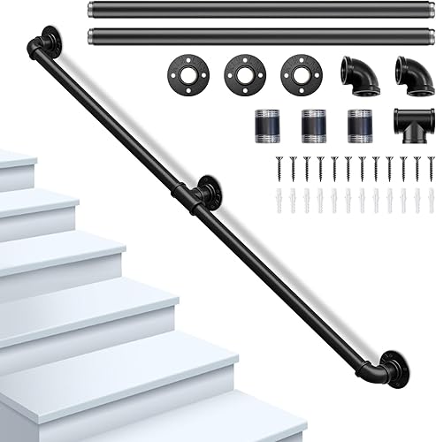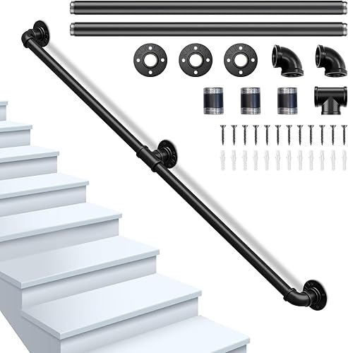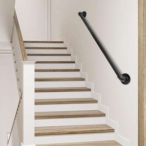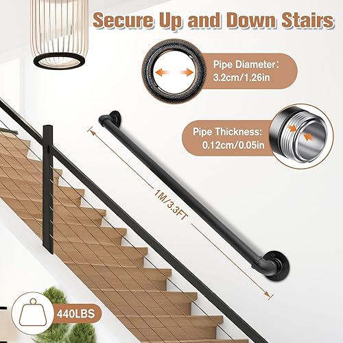 Corrimano per Scale Interne, Orifesio Passamano per Scale Interne, Ringhiera per Scale Interne Esterne per Anziani Disabili Bambini, Ringhiere per Scale Tubo Zincato Nero Antiscivolo, 100CM
