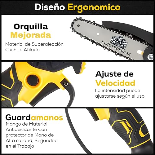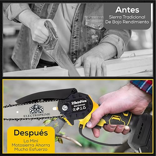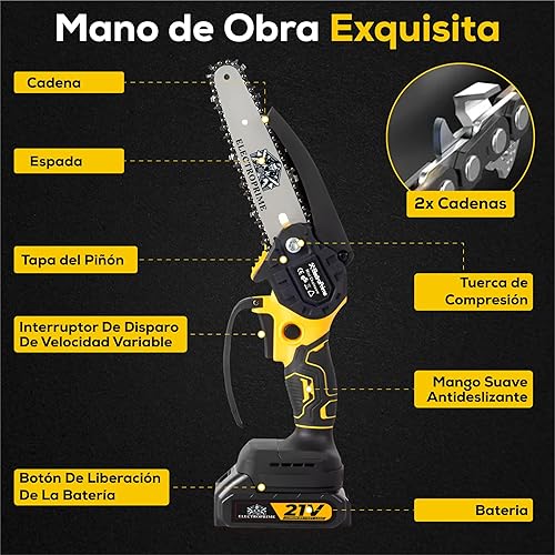 Mini Motosega a Batteria | 6000mAh 21V 2 Batterie | 6 Pollici 880W | Lubrificazione Automatica | Include 11 Accessori | Motosega Elettrica Portatile a Mano | Con Blocco di Sicurezza