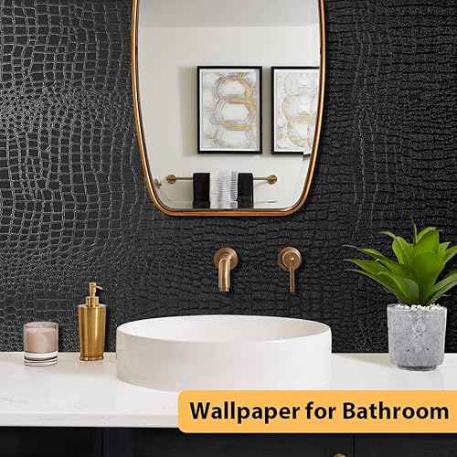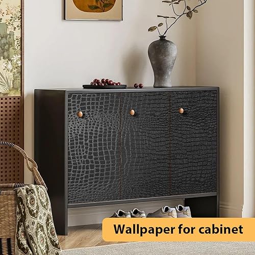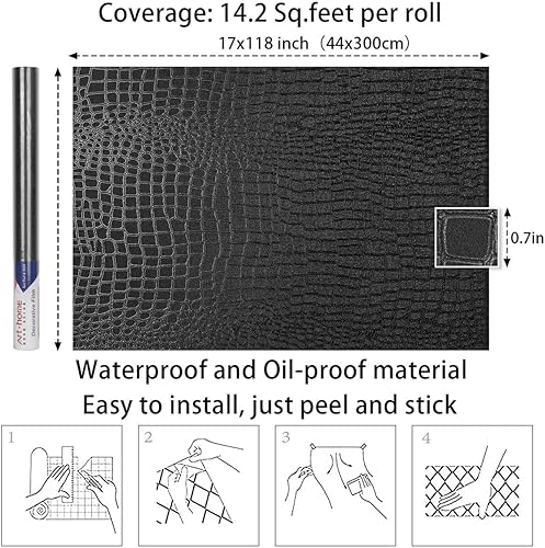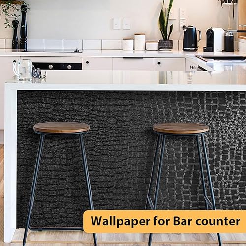 Arthome Adesiva Carta da parati Nera,44cmx6m Coccodrillo Testurizzato Autoadesiva carta di Pelle Rimovibile Carta da Parati Impermeabile Vinile Wrap carta pelle di Alligatore per mobili