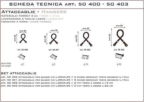 ARMONIE D'EPOCA ATTACCAGLIA per Quadri in Ferro BATTUTO (Scatola 5 PZ mm 65X65)