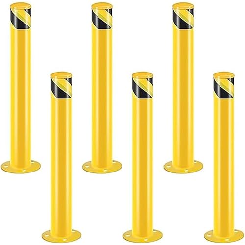 Dissuasore di Sicurezza 91cm, Dissuasore Paletto Verniciato Polvere Giallo, Barriera Parcheggio Auto con Bulloni di Ancoraggio per Pedoni (6 pezzi - diametro 7,6 cm)