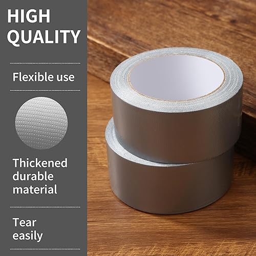 2 pezzi Nastro americano, 48 mm x 27 m Nastro Adesivo Telato, Nastro Sigillante Impermeabile, per riparazioni, Rinforzi, sigillatura, Etichettatura, interni ed esterni (Argento)