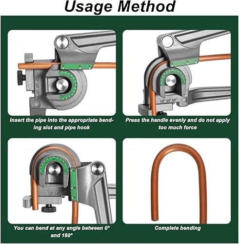 Piegatubi 180 Gradi, Strumento 3 in 1 Piegatubi in Rame e Alluminio per 1/4, 3/8, 1/2'', Piegatubi HVAC a Manico Lungo per la Riparazione di Aria Condizionata e Refrigerazione