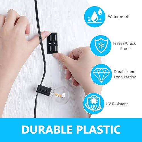 Clip per Luci da All'aperto, 30PZ Ganci per Luci Natalizie da Appendere Senza Danni con Strisce Adesive, Vacanza Luce Gancio Clip per Luci Sospese Decorazioni e Cavi Natalizi - Trasparente
