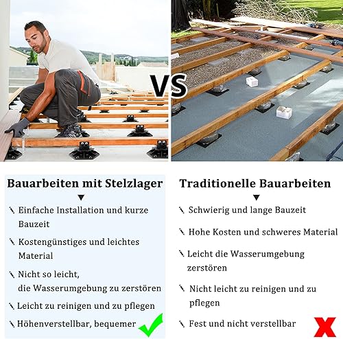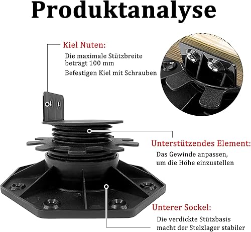 Cuscinetto per trave - 20 pezzi Universal Base Regolabile per lastre die pietra supporto per WPC Balcone Terrazzo 60-140 mm (20 pezzi)