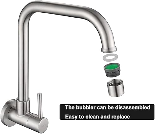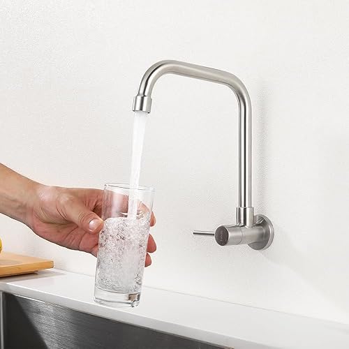 Rubinetto Cucina a Parete Solo Acqua Fredda, G1/2 in Rubinetti a Muro Girevole a 360°, Monocomando Lavello inAcciaio Inox 304, Aeratore Rimovibile, Spazzolato