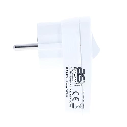 as - Schwabe, 45034, Spina di protezione angolo di contatto, 230V / 16A, con interruttore luminoso, bianco