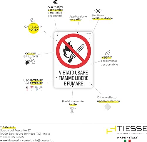 TIESSE - VIETATO USARE FIAMME LIBERE E FUMARE - Cartello (non adesivo) Forex (PVC espanso) - Dimensione: 120x180 mm - MADE IN ITALY
