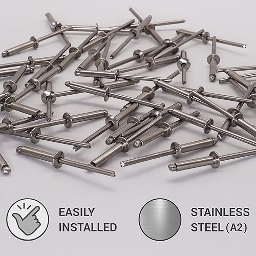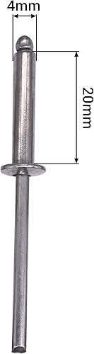 SKIR'CO Confezione da 30 rivetti ciechi in acciaio inox, 4,0 x 20 mm, testa a cupola, rivetti pop, DIN 7337, A2 (30, 4,0 x 20 mm)