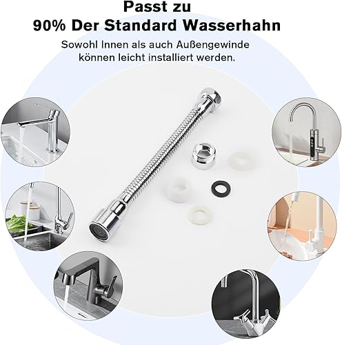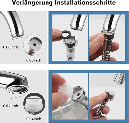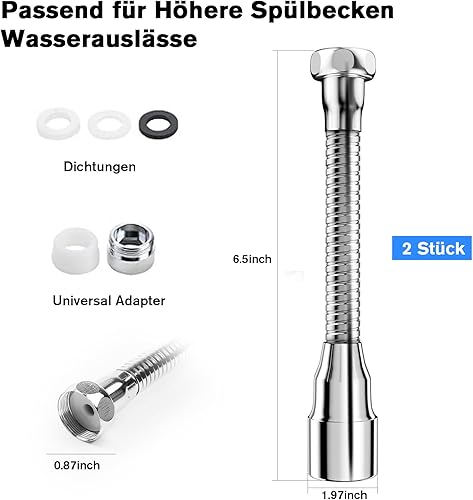2 Pezzi di Prolunga Rubinetto Cucina Universale, Prolunga Lavandino Cucina, Prolunga Per Rubinetto a Parete per Rubinetto Multifunzione in Acciaio Inox, per Cucina e Bagno, 20 cm