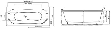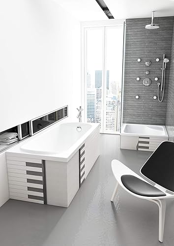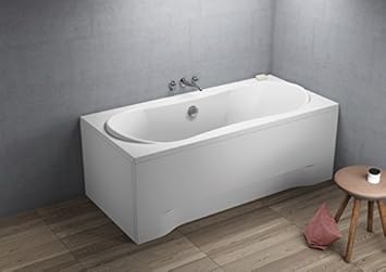 Vasca da Bagno 170x80 cm Rettangolare, Set Acrilico 3 in 1 con Supporto, Sifone, Design Classico per 2 Persone, Bianco, Polistirolo, Cromato, Vasca Freestanding, Elegante e Resistente