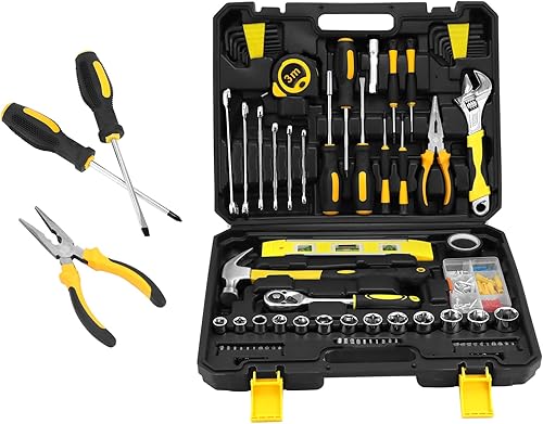 Cassetta Attrezzi Completa, Valigetta Attrezzi 140 Pezzi, Cassetta Attrezzi con Cacciavite e Chiave Inglese, per Edilizia e Casa
