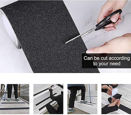 Nastro adesivo antiscivolo con autoadesiva, per gradini di scale, nastro adesivo antiscivolo (10 cm x 5 m, nero)