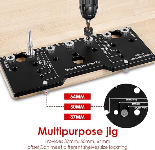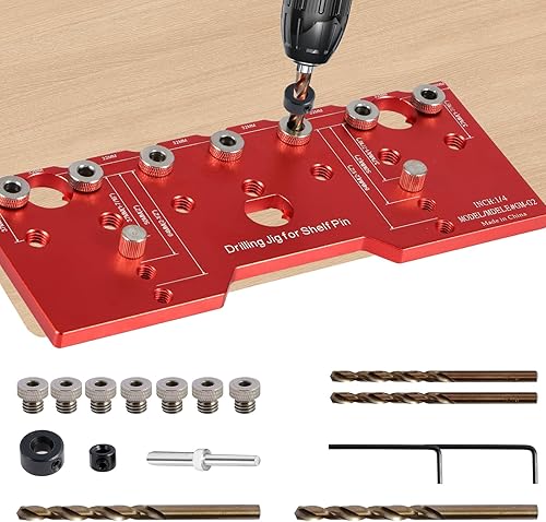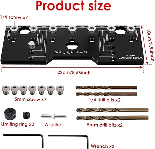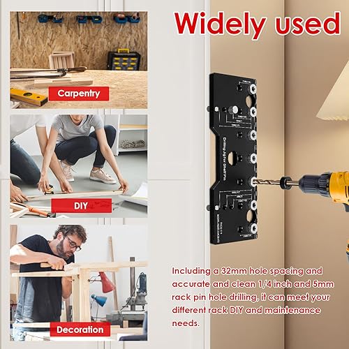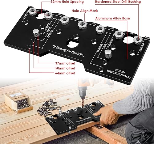 Maschera per perni per mensole, 1/4 di pollice da 5 mm, guida per la foratura dei perni della mensola in lega di alluminio, maschera precisa per montaggio dell'armadio, spaziatura 32 mm, lavorazione