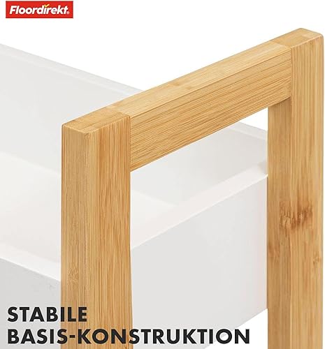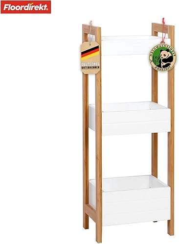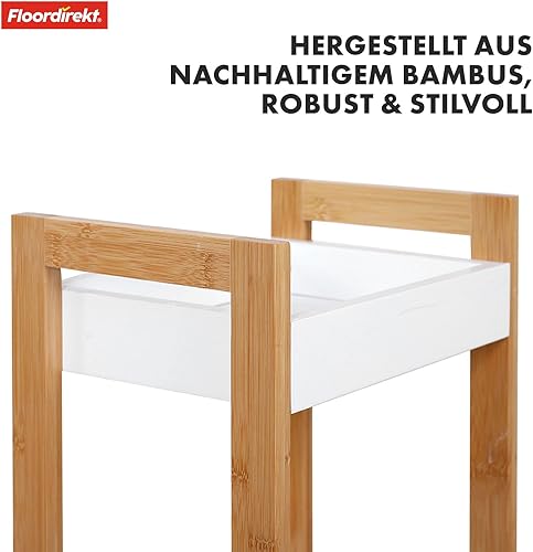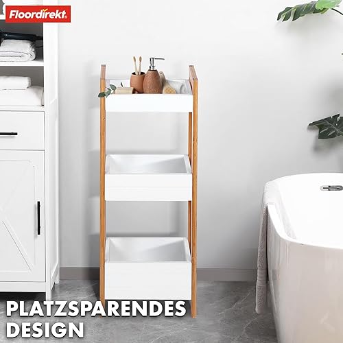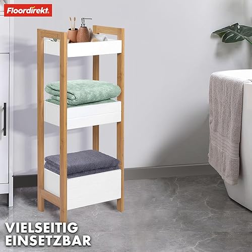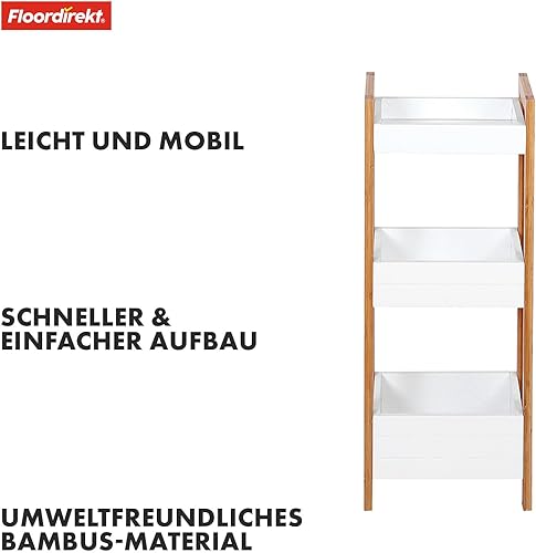 Scaffale da bagno in bambù Texas a 3 ripiani, colore bianco, moderno scaffale per bagno, bambù e effetto legno, mensola da bagno