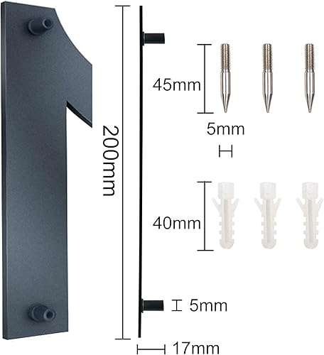 Numero civico in acciaio inox Altezza: 20 cm, Moderna targa numero civico esterno RAL 7016 antracite, spessore 2 mm, metallo numero di strada in acciaio inox - Arial, numero 1