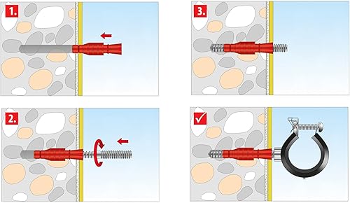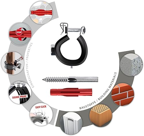 TOX Set di morsetti per tubazioni, morsetto articolato per tubi da 32-35 mm (1 pollice) M8, tappo universale TRI 10/61 e vite prigioniera M8x80 con azionamento TX, 10 pezzi, 089101103