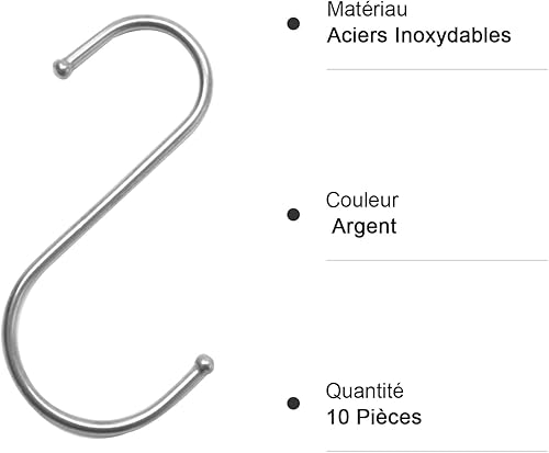 Set di 10 ganci in acciaio inossidabile a forma di S, gancio da cucina a S, ganci multifunzionali a forma di S, per cucina, bagno e camera da letto