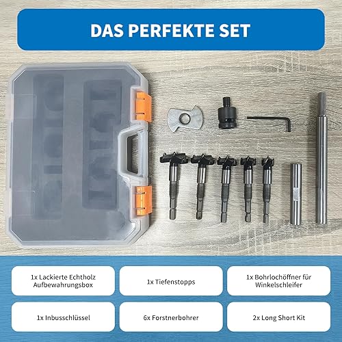 Punta per Trapano Forstner,set di frese per legno, 15-35 mm,punte per trapano con gambo rotondo, punta di centraggio, per legno e legno duro, con punte legno da 35 mm, 30 mm, 25 mm, 20 mm, 15 mm