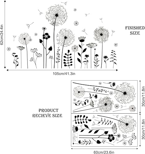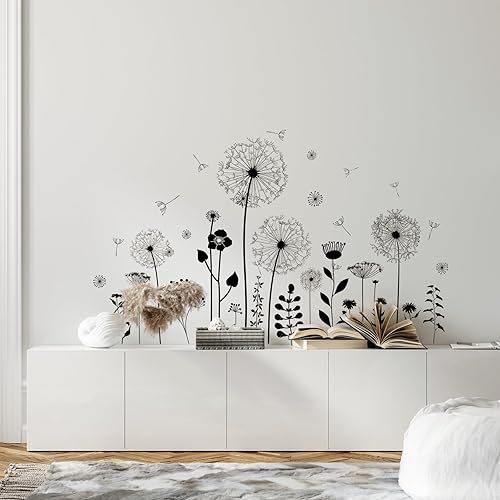 Supzone Adesivi Murali Fiori di Tarassaco Nero, Decalcomanie Floreali per Pareti, Adesivi da Parete Autoadesivi Rimovibili per Soggiorno e Camera da Letto