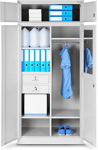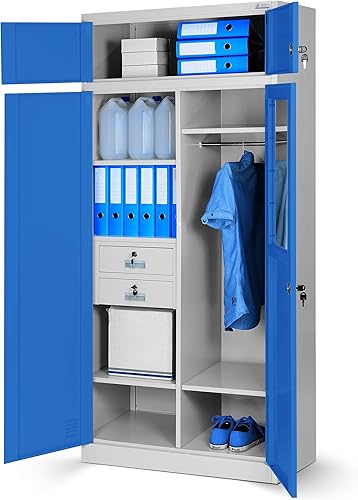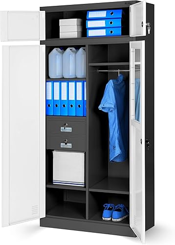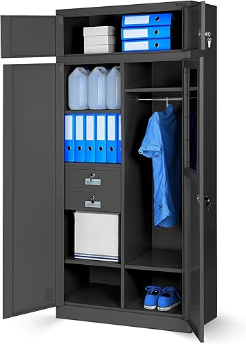 Armadio da Ufficio in Metallo Armadietto Archivio Multiuso Scomparto segreto Cassetti Verniciato a polvere Bloccabile 185 cm x 90 cm x 50 cm (Antracite)