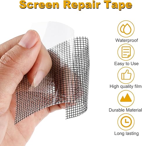 Nastro autoadesivo per la riparazione di finestre, 60,9 cm x 457 cm, kit di toppe per riparazione schermo di finestre o porte, nastro adesivo forte, in fibra di vetro, nastro di riparazione