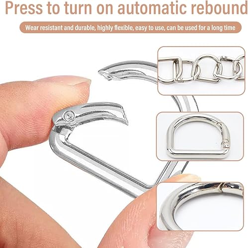 Moschettoni a innesco, 8 pezzi Cinghie per portafogli con fibbia a molla con anello a D clip per chiave a molla realizzate in lega metallica (Argento)