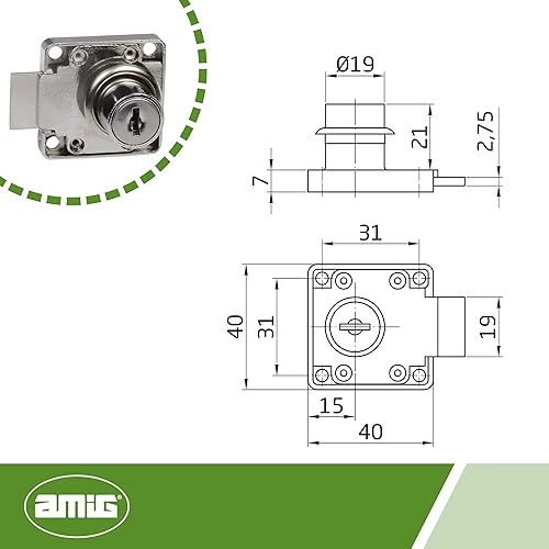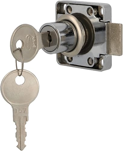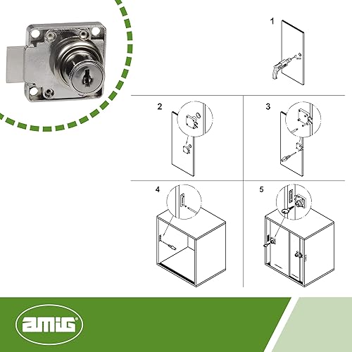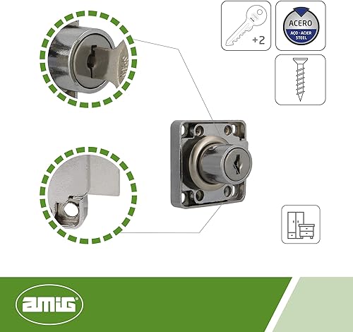 Amig - Serratura rinforzata per porte di mobili Mod.7 + 2 chiavi Mod.371 | per armadi di casa o ufficio | in acciaio nichelato | chiusura a destra | sicura e facile da installare