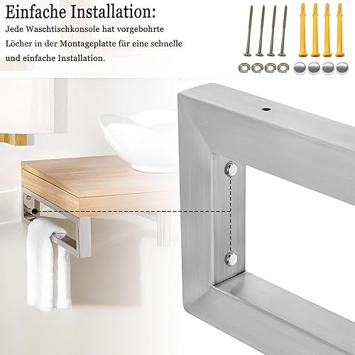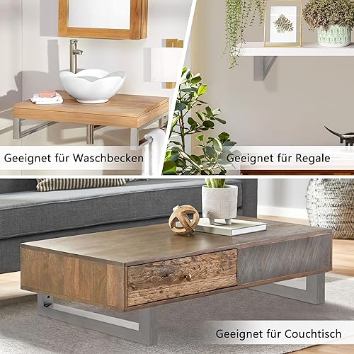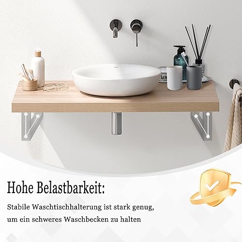 Aufun set di 2 staffe a muro per lavabo 300x150 mm (LxH), staffa per lavabo, supporto per mensola in metallo, supporto per mensola, staffa pesante per lavabo e mensola a muro, argento