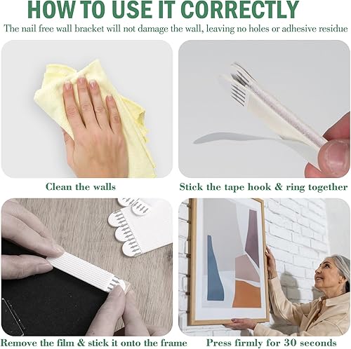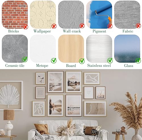 Appendi Quadri Senza Chiodi, 36 Paia(72 Pezzi) Chiodi Adesivi per Quadri Muro, 19 x 92mm Adesivi per Quadri da Appendere, Appendi Quadri Adesivi Adatto per Quadri Cornici Poster Foto Decorazioni