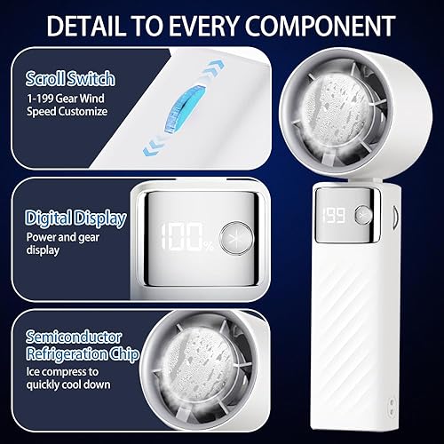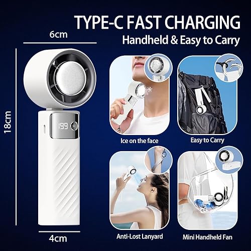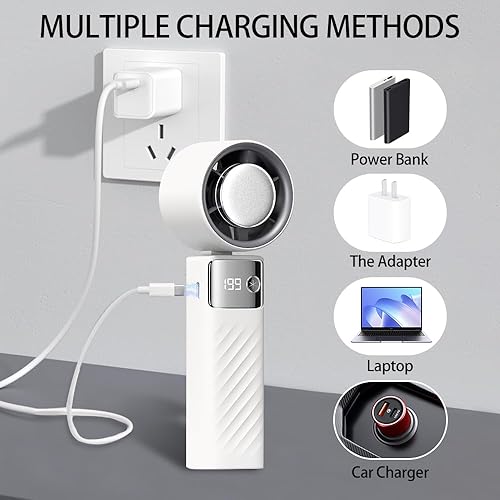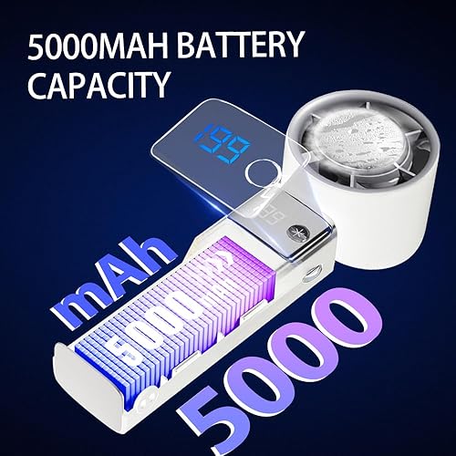 Mini Ventilatore Portatile, Ventilatore a Batteria Ricaricabile 5000mAh, Ventilatore Piccolo Potente Silenzioso Turbo con 199 Velocità per Ufficio, Viaggi, Esterni, Interni e Aperto (Bianco)