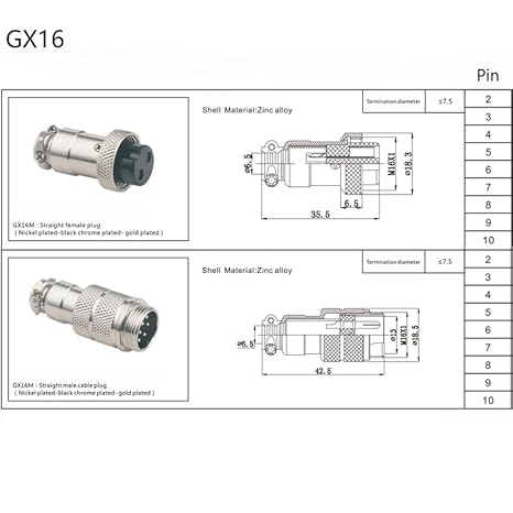 3.28 ft GX16 3 poli maschio a testa femmina aviazione, GX16 3 pin femmina a maschio cavo elettrico pannello pannello di montaggio circolare metallo aeronautico cavo adattatore cavo per navi 18AWG