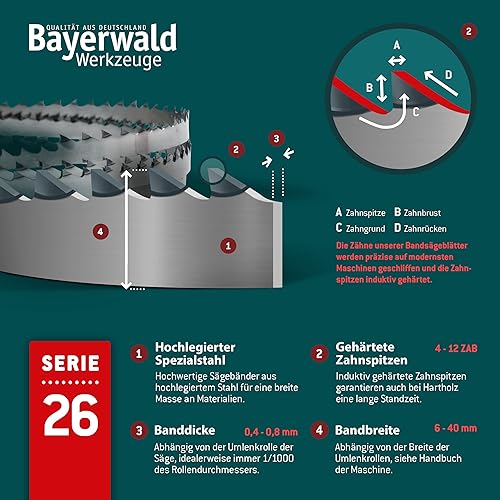 Bayerwald - Lama per sega a nastro, in acciaio temprato, 2490 x 10 x 0,5 x 6, per tutti i tipi di legno/sega a nastro, adatta per seghe a nastro