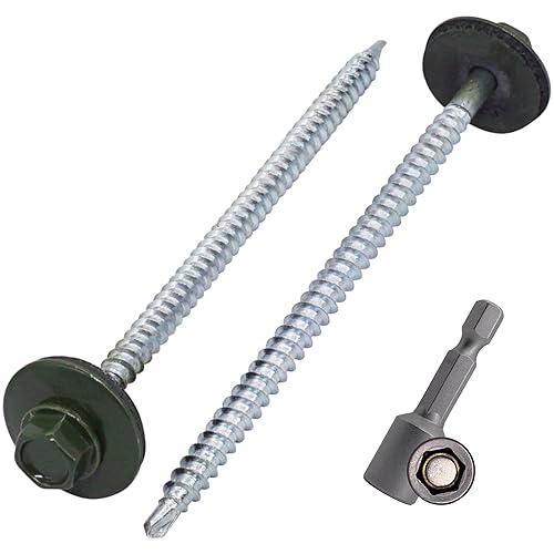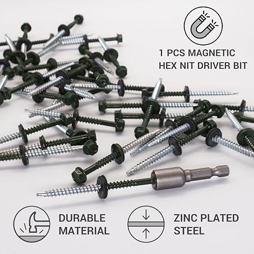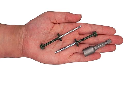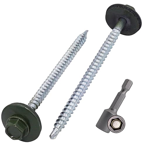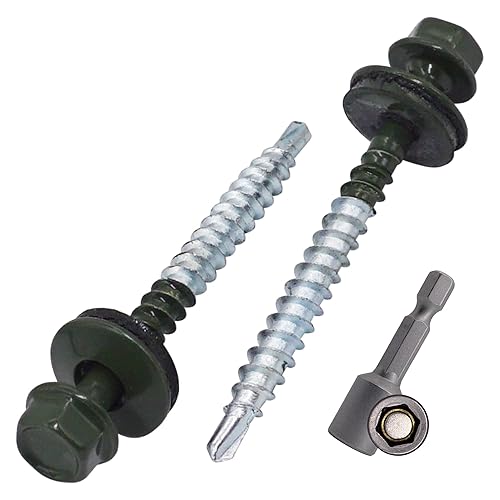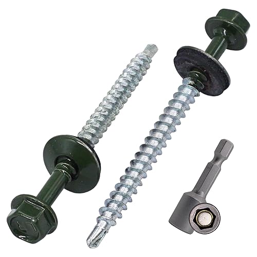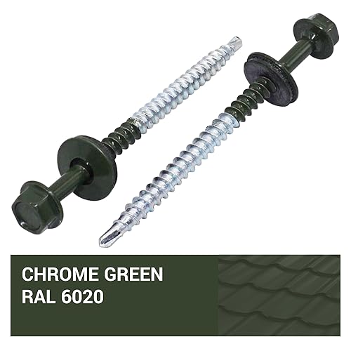 SKIR'CO (200 pezzi) Viti per tetti verniciate 4,8 x 50 mm, testa esagonale, viti autoperforanti con rondelle EPDM (verde cromo, RAL 6020)
