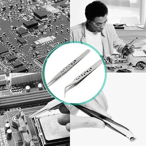 4 pezzi Pinzette,Pinzette di precisione,Pinzette modellismo,Pinzette a Gomito Pinzette a Punta,Pinzette industriali,pinzette in acciaio inox,Antistatico,per DIY Jewelry,Elettronica,Lab
