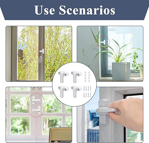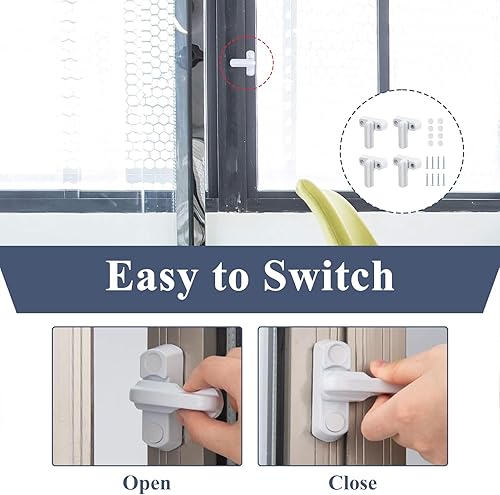 4 Pezzi Chiusura di Sicurezza per Porta Finestra, Sash Jammer Serrature Blocchetti per Finestra, Chiusura in Lega di Alluminio, Limitatori di Apertura Adatte Porte e Finestre in PVC U Legno Composito