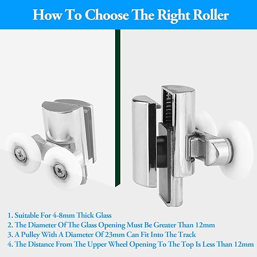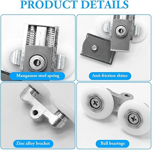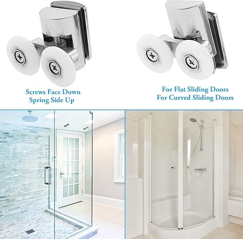 4 ruote gemellate per porta doccia, rullo per cabina in lega di zinco, ricambio per cabine curve, per bagno, porte curve (2 superiori, 2 inferiori)