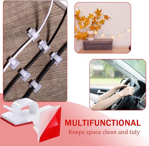 TRKETK 100 Pezzi Clip per Cavi, Clip per Cavi Autoadesive Ganci da Esterno per Luci Supporto per Gestione Cavi Cavi Mini Ganci per Auto Ufficio Casa Natale Decorazioni da Appendere Fata Luce (Bianco)