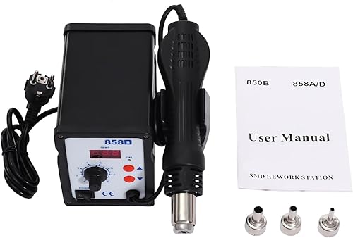 Stazione di saldatura digitale ad aria calda set 858D 700W saldatore Rework Station regolabile temperatura e velocità del vento stazione dissaldante con pistola termica e 3 ugelli ad aria calda