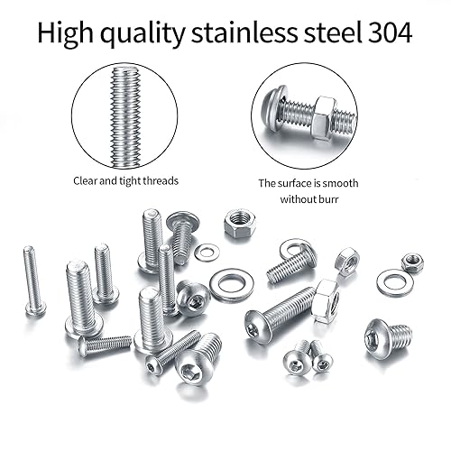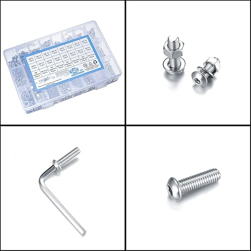540 Pezzi a Testa Bombata Esagonale e Dadi e Rondelle, Set di Viti a Esagono Incassato M3 M4 M5 M6, Viti a Testa Cilindrica in Acciaio Inossidabile con Chiave