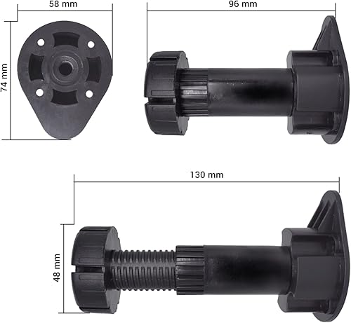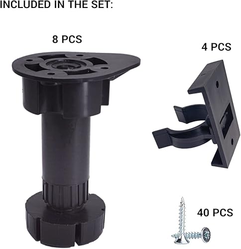 Confezione da 16 gambe nere regolabili in altezza per mobili con clip, piedini per mobili da cucina, gambe per armadietti, viti incluse (16)