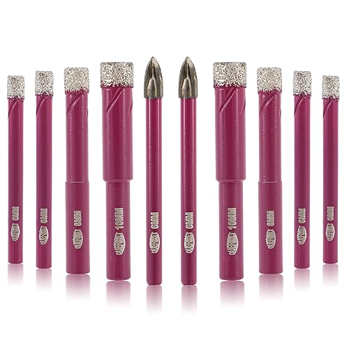 QUEFORET Punte Diamantate Gres Porcellanato 6mm - 10 Pezzi Punte Trapano per Porcellana Piastrelle Ceramica Marmo Granito, Gambo Rotondo