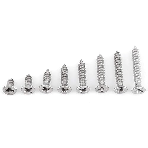 Assortimento di viti Tek in lamiera autoperforante in acciaio inossidabile SS304 da 200 pezzi M3 / testa piatta(Flat Head Self-tapping Screws)