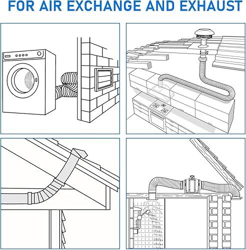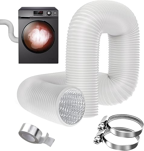 Tubo Flessibile 100mm x 5m Condotti Tubo di Ventilazione Flessibile in Alluminio PVC Condotti Tubo di Ventilazione Con Morsetti in Acciaio per Asciugatrice Cappa Aspirante (100mm x 5m)