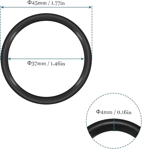 45mm x 37mm x 4mm Nitrile Gomma O-ring x 10pz Rotondo Guarnizione Rondella per Rubinetto Idraulica Riparazione Sigillatura Connessione [Nero]