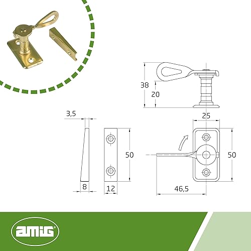 Amig - Aldabilla Tipo San Sebastian per persiane Mod.12 | 50 x 25 x 20 mm | Chiusura interna per ridurre rumori e correnti d'aria | in acciaio ottone | Include tirafondi