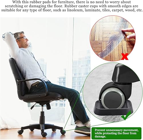 5 Pz Coppe Bloccaruote in Gomma per Mobili Tazze per Ruote in Gomma per Mobili Coppette per Rotelle Piano Caster Cups Protezioni per Pavimento Antiscivolo per Mobili Letto Divani e Sedie, Nero
