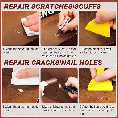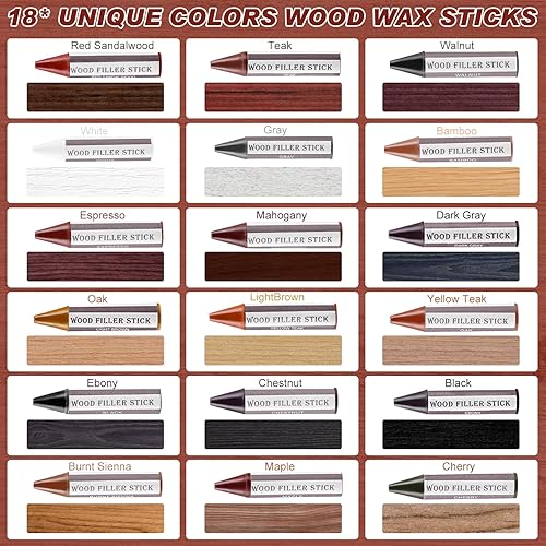 DEWEL Kit Riparazione Parquet,18 Ritocco Legno Cera Stick,Pennarello per Legno per Riparazione di Graffi e Fori nei Mobili in Legno (20 Pezzi)