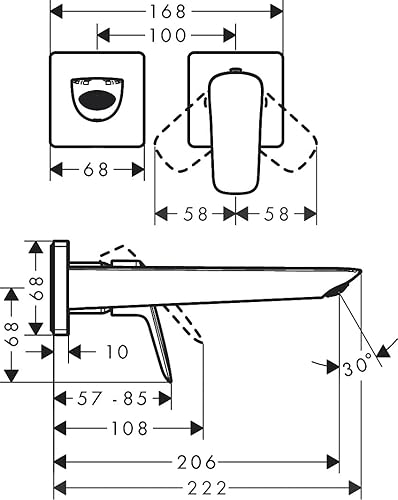 hansgrohe Logis - Rubinetto lavabo a incasso per montaggio a parete, Miscelatore lavabo risparmio idrico (EcoSmart) con bocca di erogazione 20,6 cm, nero opaco, 71256670